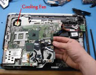 čišćenjem laptopa od prašine, zamenom termoprovodne paste i podloški , podmazivanjem